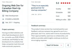 One of these reviews — a web development project for a billing startup — gives readers an accurate overview of the types of projects that we deliver.
